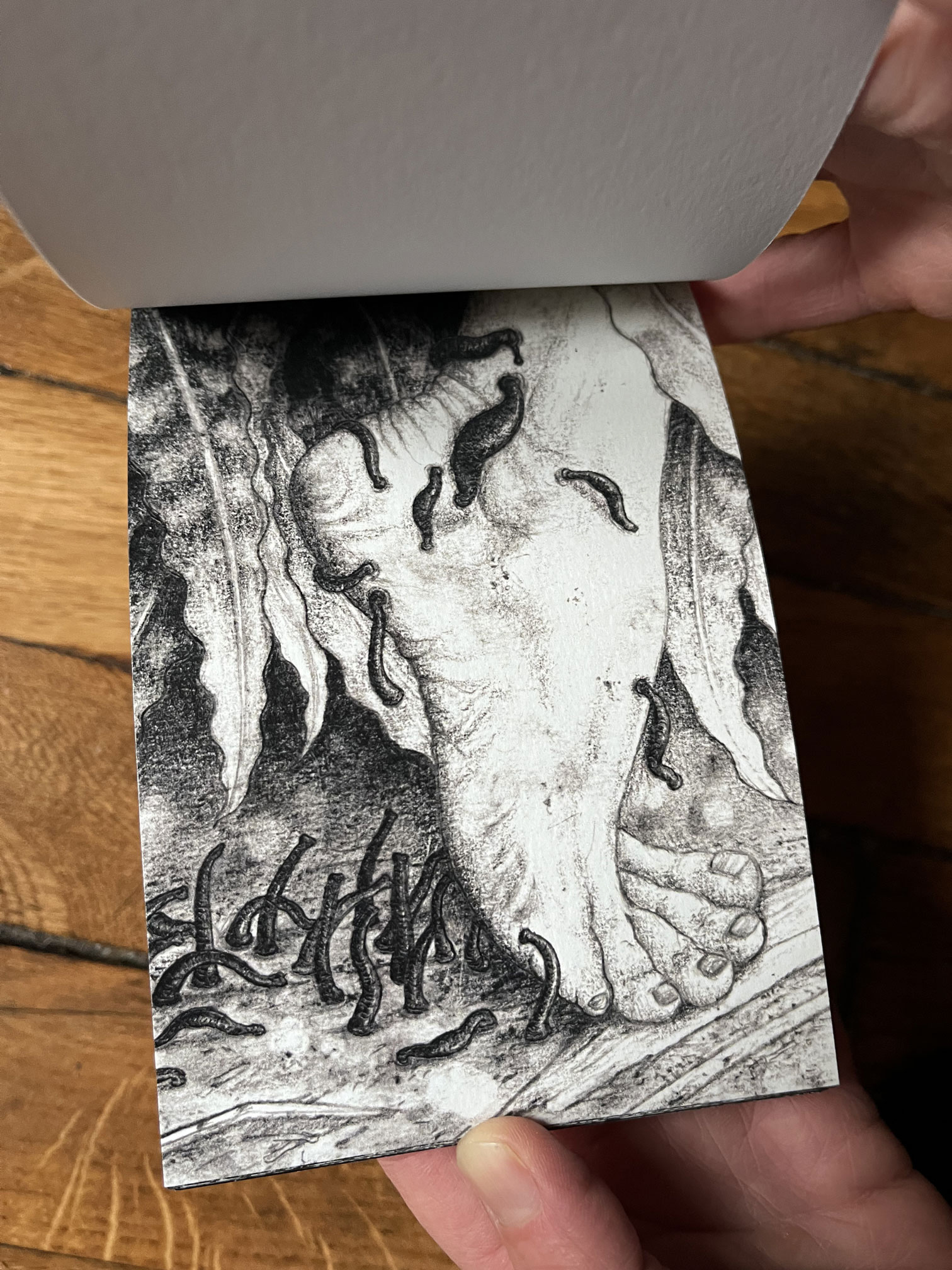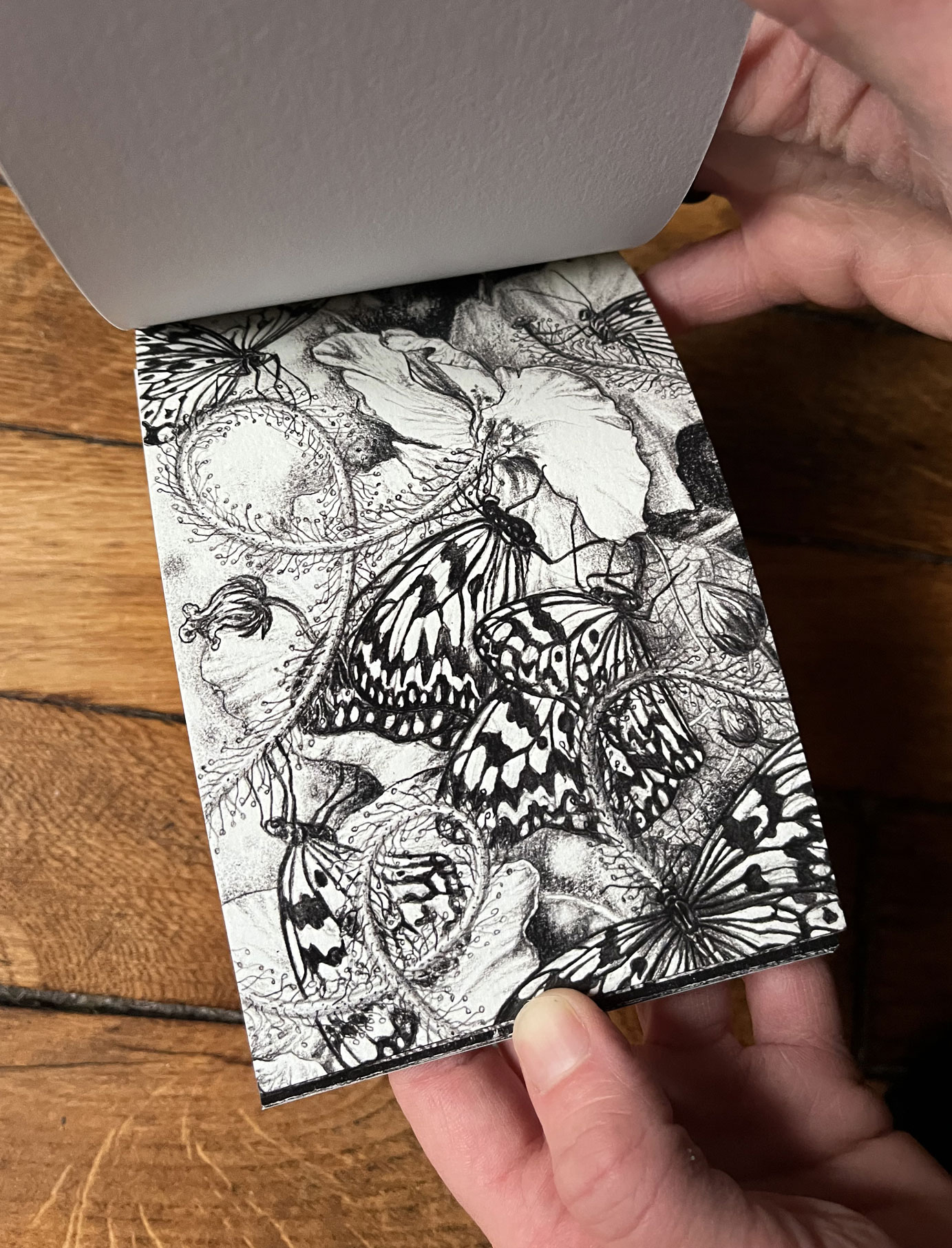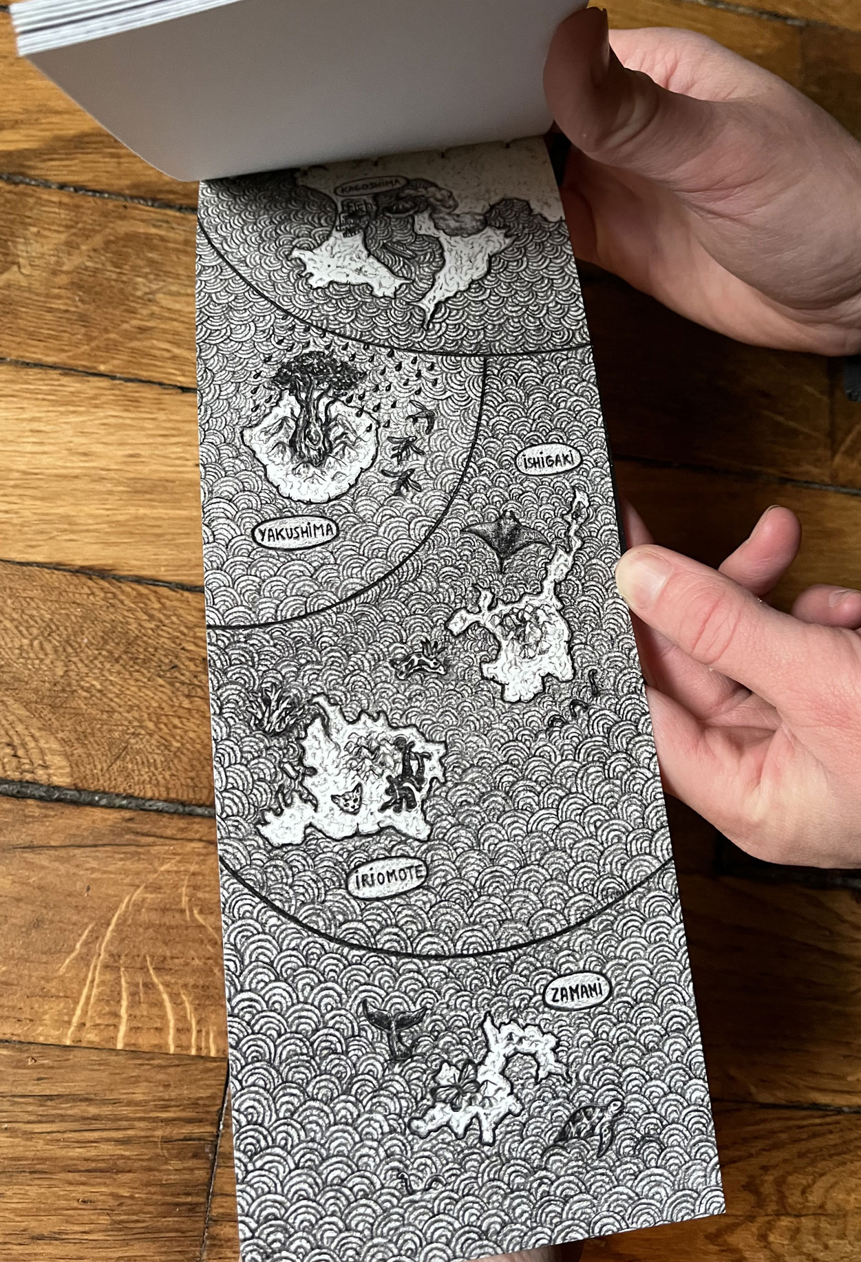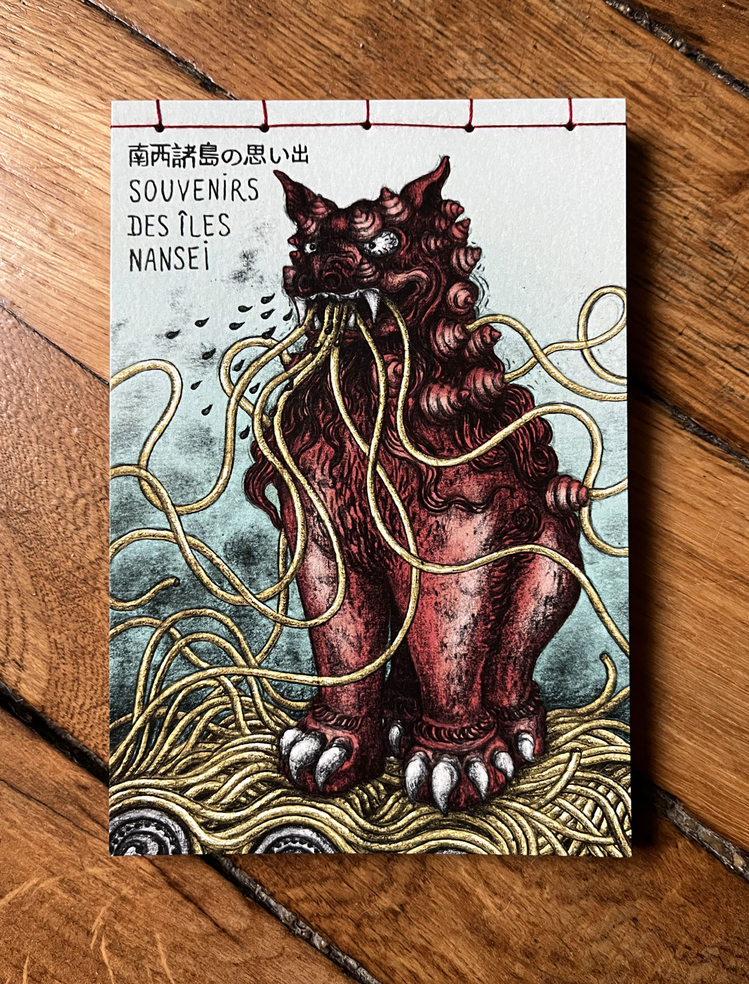 Impressions et réminiscences d’un voyage à travers le Japon tropical. Second tirage du mini-zine édité par l’Orbise en 2024. Carnet de 22 pages, format A6, papier 270g, relié à la main. 100 exemplaires numérotés.